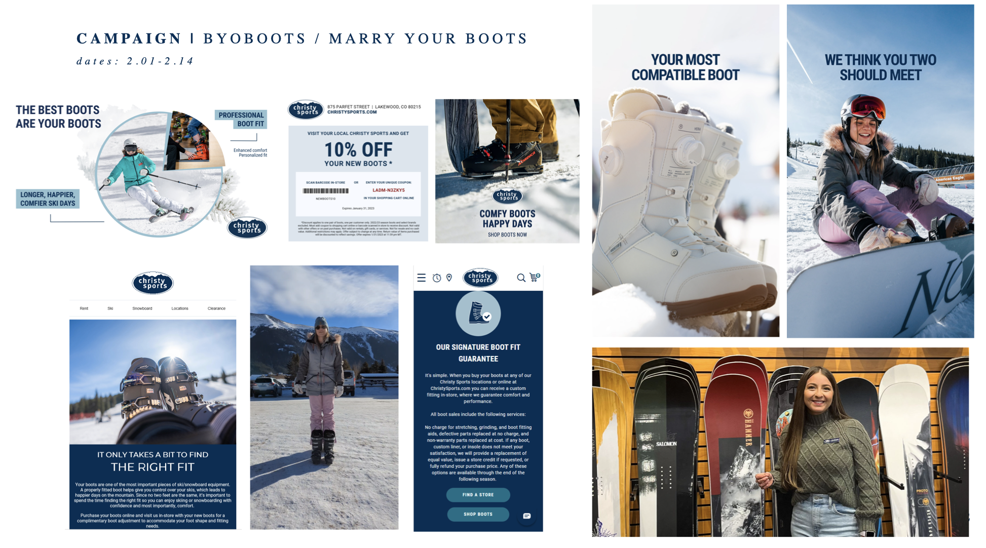 A campaign designed to upsell ski and snowboard boots for a Valentine’s Day promotion.